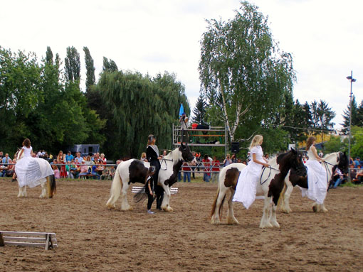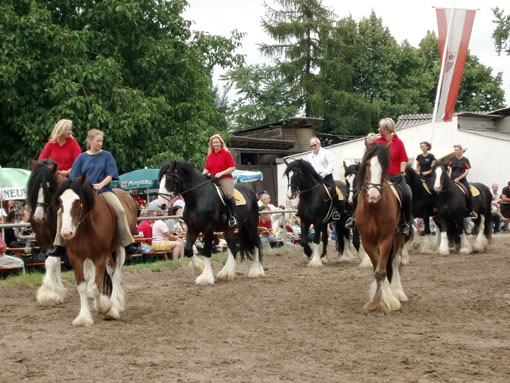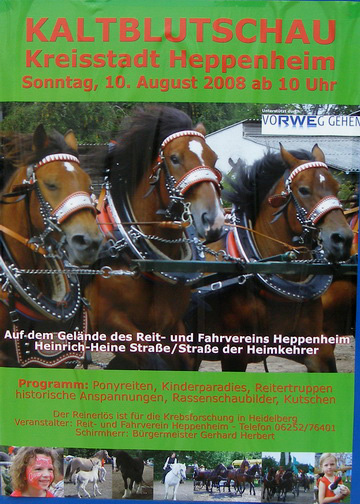 Am Sonntag hat in unserem Reit-und Fahrverein wieder eine Kaltblutschau stattgefunden. Das Wetter war sehr gut, warm, aber leicht bedeckt, also sind sehr viele Interessierte gekommen, Familien mit Kindern, Junge, Alte, Behinderte, Sportler, Reiter und Nichtreiter, Neugierige und wir. Wir haben viele Bekannte getroffen. Und unsere Tochter auch, die diesmal ihr Arbeitseinsatz für Verein zu erfüllen hatte. Wir durften zuschauen, aber wir erinnern uns noch an Jahre, wo wir bei Turnieren stundenlang im Verkauf (Essen, Getränke), Spülen, Salate schneiden usw. geholfen haben. Was hat man nicht für das Kind gemacht? Heute engagieren sich die Eltern der nächsten Reitergeneration. Und wir sind jetzt Gäste.