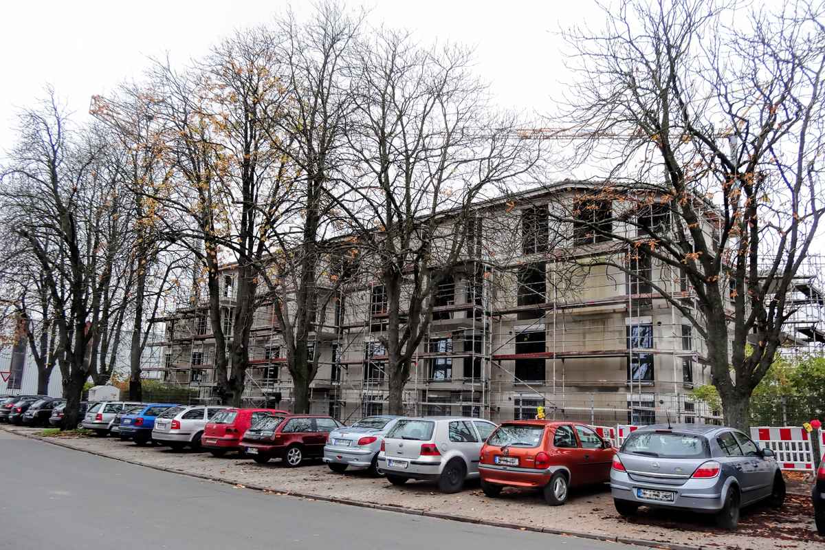 An anderer Stelle fahre ich auch mehrmals am Tag vorbei und wundere mich immer wieder. Es ist ein Eckareal an der Ketteler Straße, umsäumt von vielen alten Kastanienbäumen. Man hat dort schon paar 3-Stöckige Häuser gebaut, begrünt – schön. Die Wohnungen sind auch nett, ich war schon in einer drin.