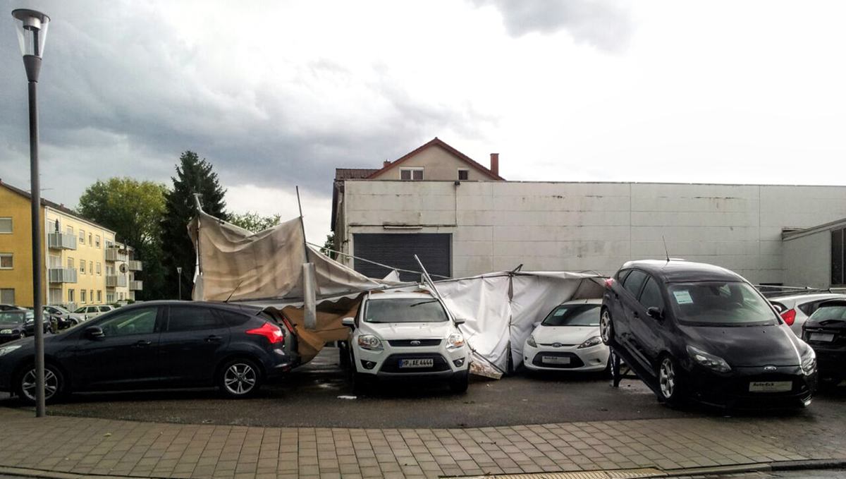 Heute früh konnte man erst den Ausmaß in der Stadt sehen: paar entwurzelte Bäume (Foto), hier und da Stämme schon geschnitten und Äste auf einen Haufen geordnet, bei Autohaus Eck wurde eine Zeltplane gehoben und ist mit dem Gestänge auf mehrere Autos gefallen, einige sogar durchbohrt (Foto). Am Eckweg sind im Weinberg Schäden entstanden, alter Mandelbaum umgekippt.